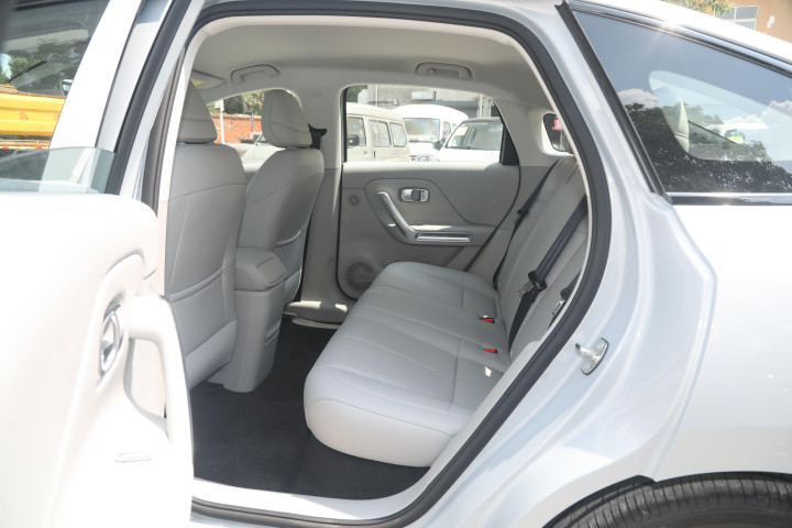 做个对比,热门的秦PLUS是83.1%,轴距更长的Model 3是82%。实际坐进后排,能明显感觉到腿部空间比较充裕,而且后排地台是纯平的,中间坐个人也不会憋屈。后排靠背角度也经过优化,是28°的舒缓角度,长途乘坐不容易累。